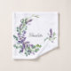 Weißer Hintergrund mit Lavendel und Eukalyptuskranz. Personalisieren und fügen Sie Ihren Namen, schwarz handgeschriebene Stil Skript.