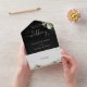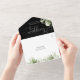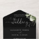 Das Ganze in einer eleganten Schwarz-Weiß-Hochzeitseinladung mit grünen Blätter, schicken Herzensskripttypografie und Monogramm-Initialen. Die Einladung enthält eine perforierte RSVP-Karte, die für Sie individuell adressiert oder links als leere Karte für die Handschrift der Adressdaten Ihres Gastes verwendet werden kann. Entwickelt von Thisisnotme©