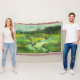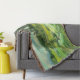 Wasserfarbe auf Seide. Künstler von Zolotareva. Phantastische Landschaft. Schöner Sommertag. Saisonaler Wald Pine Bäume Elegant. Laubwald und Nadelwald.