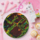 Grüntöne, die in Flammen entwässert werden Pappteller