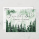 Wasserfarbene, rustikale, grüne Waldmalerei Save the Date Postkarte. Personalisierbar!