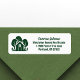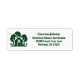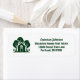 Dieses Anwesen-Rücksendeetikett ist perfekt auf einen Immobilienmakler abgestimmt, der sich in der Nähe der Wildnis oder des Waldes spezialisiert hat. Die grüne Silhouette von Bäumen hinter einer Blockhütte Zuhause und personalisiert mit Ihrem Agent und Immobilien-Firmennamen für Marketing in den Hinterwäldern.
