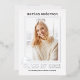 Klasse der 2023 Schreibmaschine echte Silber-Folie Abschluss Foto Einladung. Die Rückseite ist mit einem grauen und weißen Muster mit Streifen versehen.