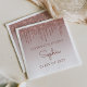 Diese eleganten, eleganten Graduierungsparty Papierservietten verfügen über eine funkelnd Rose Gold Imitate Glitzer Tropfen Rand und ombre Hintergrund. Personalisieren Sie sie mit dem Ehrengast in der Handschrift der dunklen Rose, mit ihrer Klasse Jahr unten in Sans Serif Schriftart. Ideal für High School oder Uni-Abschluss.
