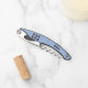 Dieser Korkenzieher ist hellblau mit einer Gruppe von sechs abstrakten, schwarzen Schildkröten mit farbigen Muschel in verschiedenen Farben. Passen Sie Ihren Namen mit den Vorlagen vorne und hinten an.