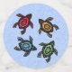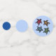 Dieser Tisch Konfetti hat große Kreise, die hellblau sind mit einer Gruppe von vier schwarzen Schildkröten mit bunten Muscheln in den Farben Grün, Blau, Rot und Gelb. Mittlere Kreise sind hellblau, kleine Kreise sind dunkelblau.