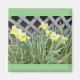 Ein quadratisches Magnet mit einem Bild einer Gruppe von Affodien und grünem Boden.