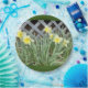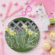 Ein 9-Zoll-Blatt mit einem Bild einer Gruppe von Affodilen, darauf dunkelgrüner Hintergrund.