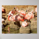 Gruppe Flamingos (Phoenicopterus ruber) auf Nestern
