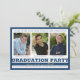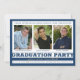 Moderne Abschlussfeier in Blau und Weiß für ein kombiniertes Party von zwei oder drei Freunden oder Geschwistern mit Fotos (einer von drei Freunden oder für zwei Personen ein Foto von jedem und eins mit beiden in der Mitte). Enthält einen editierbaren Titel, den Sie ihrer Schule und/oder Klasse des Jahres hinzufügen können. Die Party Einladung ist vorne und es gibt einen Platz, wo optional Details zu jedem Absolventen auf der Rückseite hinzugefügt werden können (den Beispieltext löschen, falls nicht gewünscht, oder den Platz für weitere Party-Details verwenden). HILFE: Für Hilfe bei Designänderungen oder Personalisierungen, Farbänderungen, Größenanpassungen oder der Übertragung des Designs auf ein anderes Produkt wenden Sie sich bitte an den Designer, BEVOR er Bestellung über die Registerkarte Zazzle Chat MESSAGE unten oder per E-Mail an makeitaboutyoustore@gmail.com.