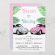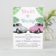 Sie werden diese tropischen grünen Aquarellpalmen mit rosa und blauen Vintagen Wasserfarbenautos Liebe. Ideal für eine Gender-Offenbarung!