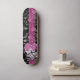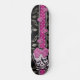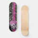 Gruseliger Mädchen-Schädel mit rosa Bogen auf Skateboard