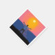 Gruß an die Sonne. Ein Mann ist an einem Strand stehend, der zum offenen Meer hin ausgerichtet ist und die gelbe Sonne mit aufgehauchten Armen salzt.