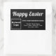 Frohe Ostern! Wir wünschen Ihnen ein Osterfest voller Hoffnung, Glaube, Liebe, Freude und Frieden! Ein Urlaub und die Saison, um diesen März oder April zu feiern und auch Ihr Geschäft zu werben. Schwarzer Rechteckaufkleber mit Ostergrüßen, den Sie anpassen können, indem Sie Ihr Firmenlogo hochladen und Ihren Firmennamen, Ihre Adresse und Ihre Telefonnummer eingeben. Passen Sie es an und nutzen Sie es, um Ihre Kunden oder Kunden zu begrüßen, zu Ostern und als Marketing-Material, um Ihr Unternehmen zu werben oder Ihren Markennamen zu fördern. Sie können es auch als Zubehör für das Verpackungsmaterial Ihres Produkts verwenden. Anpassbare Rechteck-Aufkleber, mit denen Sie Markenbewusstsein schaffen können. Bitte Karo des Erscheinungsbildes nach dem Hochladen von Logos und Schriftzeichen. Wenn Ihnen das Aussehen gefällt, können Sie jetzt Ihre Bestellung aufgeben. Wenn Sie das Logo und die Texte verändern und verändern müssen, um auf diesen Aufkleber zu passen, passen Sie bitte das Design-Tool an. Sie können auch den Stil des Schriftartes, die Farbe des Schriftartes und die Hintergrundfarbe im Designwerkzeug ändern. Alles Gute zu Ostern und wünschen Ihnen mehr Umsatz.
