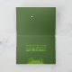 Diese Spaßphotographie auf einer Grußkarte kennzeichnet einen niedlichen grünen Spielzeugfrosch, der von der Unterseite der Karte mit einem dunkelgrünen Hintergrund Blick-ein-booing ist. Eine große Weise, eine schnelle Erholung zu wünschen einem lieben Familienmitglied oder -freund.