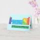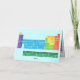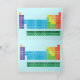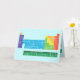 Grußkarte mit periodischer Tabelle der Elemente, wobei jede Elementgruppe in Regenbogenfarben markiert ist.