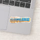 Ein Retro-Stil-Design mit den Worten "Grüße von Offline" mit einem landschaftlichen Strand-und Ozean-Blick in den Buchstaben integriert.