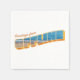 Ein Retro-Stil-Design mit den Worten "Grüße von Offline" mit einem landschaftlichen Strand-und Ozean-Blick in den Buchstaben integriert.