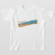 Ein Retro-Stil-Design mit den Worten "Grüße von Offline" mit einem landschaftlichen Strand-und Ozean-Blick in den Buchstaben integriert.