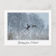 Gruß aus Finnland Natur-Souvenir-Postkarte mit zwei Grauschlackengängen, die hinter schneebedeckten Schilfröten fliegen, nach und frostigen Waldfall Ende April schweren Schneefall in Helsinki, Finnland im kältesten BlackBerry Winter in Jahrzehnten.