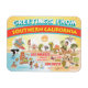 Helle und charmante Grußkarte zeigt einen skurrilen Cartoon Südkaliforniens - süße Figuren genießen die warme kalifornische Sonne, die hoch über ihr scheint.