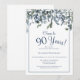Herzlich willkommen zu 90 Jahren Blauer Flora Einladung Diese lustige Einladung beinhaltet blaue und grüne Weinreben und Blume, handgeschriebene Schriften und klassische Typografie.