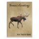 Ein digitales "Vintages" Bild eines BullenElchs (Alces alces), das auf einem alten Papier- oder Pergamenthintergrundbild abgebildet ist. Text liest "Die Grüße der Jahreszeit" erscheint ebenfalls. Fügen Sie Ihren eigenen zusätzlichen Text hinzu.