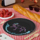 Eine helle, neonähnliche Darstellung eines Bullenmoose auf schwarzem Hintergrund. Text liest, "Die Grüße der Jahreszeit" erscheint in blau und weiß. Inspiriert durch die Nordlichter.