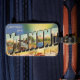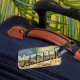 Eine klassische Retro-Postkarte, die von Vermont auf einem Gepäckanhänger umgerollt wird.