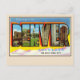 Diese Vintage Postkartenwiedergabe enthält große Buchstaben, die mit ikonischen Bildern von Denver Colorado gefüllt sind.