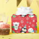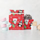 Einen roten Hintergrund und Spaßfeiertagscharaktere kennzeichnend, mögen Sie einen polaren Bären, eine schneebedeckte Eule und einen niedlichen Penguin! Grafiken durch Lilly Bimble an MyGrafico.com
