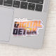 Die Grafik zeigt den Satz "Gruß von Digital Detox" mit einer Sonnenuntergangsszene, die in die fette, 3D-Schrift eingebunden ist. Das Design legt einen Rückzug vom digitalen Leben nahe.
