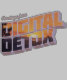 Die Grafik zeigt den Satz "Gruß von Digital Detox" mit einer Sonnenuntergangsszene, die in die fette, 3D-Schrift eingebunden ist. Das Design legt einen Rückzug vom digitalen Leben nahe.