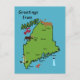 Grüße aus Maine mit Maine-Karte und klassischer Maine-Ikonographie, Hummer, Leuchtturm und Elche.