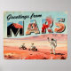Lassen Sie sich in eine Welt des Vintagen Staunens mit diesen Grüße von den Mars Retro sci-fi Poster, inspiriert von klassischen Grüße aus Postkarten. Dieses Design vereint den Charme und die Fantasie der Weltraumreisekunst Mitte des 20. Jahrhunderts, indem kühne Farben, nostalgische Typografie und kosmisches Abenteuer miteinander verschmelzen. Ideal für Weltraumfans, Sammler oder alle, die eine Touch Retro-Flair Lieben, transportiert es Sie mit einem spielerischen Nicken zur Postkartennostalgie auf den roten Planeten.