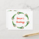 Senden Sie Ihre Grüße der Saison an Ihre Familie und Freunde mit dieser schönen Postkarte. Auf der Vorderseite der Postkarte befindet sich ein grüner und roter Kranz mit den Worten "Die Grüße der Jahreszeit". Auf der Rückseite haben Sie einen Sprig aus dem Kranz oben im Abschnitt, den Sie mit Ihrer Nachricht personalisieren.