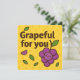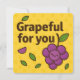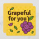 Mit dieser "Grapeful for You"-Karte bedanken Sie sich ganz herzlich! Dieser fröhliche Fruchtpun mit seinen bezaubernden Trauben auf hellgelbem Hintergrund ist ideal, um Freunden, der Familie, den Mitarbeitern oder jedem, der ein Lächeln verdient, Dankbarkeit auszusprechen. Ideal für Dankeschön-Noten, Wertgeschenke oder einfach nur-weil-Momente.