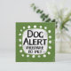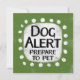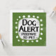Ein unumkehrbares und niedliches typografisches Tierdesign, das "Hundealarm, Vorbereiten für Haustiere" sagt. Es ist mit schwarzem und rotem Text auf einem weißen Rechteck mit funky, spielerisch weißen Punkten umgeben, die alle auf einem grauen Hintergrund liegen.