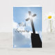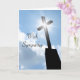 Original Farbfoto mit Silhouette eines Kirchenkreuzes mit leuchtendem Sterneffekt stehend hell gegen den blauen Himmel mit weißen Wolken. "Mit Beileid" Skript ist auf der Vorderseite geschrieben und "Ihr Text Hier" ist auf der Innenseite, um leicht anpassen oder löschen, um Ihre Nachricht zu schreiben später. Eine wunderschöne, inspirierend, nachdenkliche und symbolische religiöse Grußkarte, um Ihnen zu zeigen, dass es Ihnen wichtig ist.