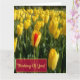 Gelbe Tulpen mit rotem Textfeld Ein Feld gelber Tulpen mit einer roten und gelben Tulpengrüße. Personalisieren Sie mit Ihrem eigenen Text. Von celeste@khoncepts.com