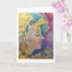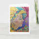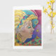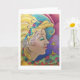 Einzigartige und farbenfrohe Grußkarte, mit einer Darstellung einer blonden Frau, umgeben von Fluten von Pinken, Teppichen und Pfefferchen. Ideal, um Grüße an die farbenliebenden Individuen in Ihrem Leben zu senden.