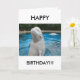 GLÜCKLICH BIRTHDAY Grußkarte mit einem Beluga Whale, der aus dem Wasser springt. Text vollständig anpassbar. Fotografie von Agatastore