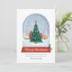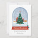 Genießen Sie Ihre Familie und Freunde mit dieser bezaubernden Schneeglobe-Grußkarte. Es gibt einen geschmückten Weihnachtsbaum inmitten eines schneebedeckten Dorfes.