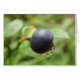 Die Grossaufnahme einer wildwachsenden Waldheidelbeere einem Wassertropfen vor Grünem mit seinem Blick auf diese Grusskarte. Die ist Deco.