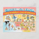 Die helle und farbenprächtige Szene bietet einen spektakulären Blick auf Südkalifornien - wackelige Figuren, die am Strand und in der Wüste von SoCal zu sehen sind, wie Los Angeles, Orange Landkreis, San Diego, Santa Barbara, Riverside, Palm Springs, El Centro, Salton Sea, Anza Borrego und Joshua Tree Park sowie die Grenzstädte von Tijuana, Tecate und Mexiko. Diese zauberhafte Szene hat alles - ein Surfer hängt zehn, ein Killerwal springt aus dem Wasser, Zootiere begrüßen die Touristen, Weinliebhaber machen einen Toast als Wanderer bemerkt von einem UFO und vieles mehr...