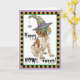 Senden Sie Halloween-Grüße mit dieser Karte eines niedlichen deutschen Welpen des kurzhaarigen Zeigers, der eine grüne Maske und einen Hexehut verziert werden mit einer albernen Spinne trägt. Groß für Kinder alles Alters das Liebe GSPs und Halloween. Haben Sie ein glückliches Heulen-oween!
