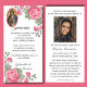 Mit unserer eleganten Jungfrau Mary of Guadalupe Spanish Dankeschön an alle Freunde und Verwandten. Danke an die Condolence Cards. Diese mit zarten rosa Rosen verzierten Karten vereinen eine aussagekräftige Wertungsbotschaft mit einer prächtigen Erinnerung an die Abgetretenen und lassen Dankbarkeit und Komfort wunderbar einfangen. Diese vielseitige Karte beinhaltet auch einen Platz für ein Foto und ein Gebet, was es zu einem perfekten Sake für diejenigen macht, die die Erinnerung an einen geliebten Menschen ehren möchten. Alle Texte und Schriftart sind vollständig benutzerdefinierbar, sodass Sie die Karte so anpassen können, dass sie Ihre individuelle Empfindung widerspiegelt.