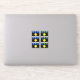 Sechs speziell geschnittene Vinyl-Aufkleber mit der inoffiziellen Variantenflagge von Guadeloupe; schwarz-blaue Flagge mit Sonne und drei gelbe Fleurs-de-lis