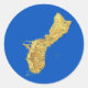Auf diesem Aufkleber zentriert sich eine Karte von Guam über einen farbigen Hintergrund. Halte dich für die guamanischen Werte ein!