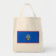 Die territoriale Flagge ist mit einer schmalen roten Grenze auf allen Seiten dunkelblau (Grenze war ein neuerer Zusatz). In der Mitte der Flagge ist das Wappen; eine Mandel formte Emblem, das ein proa Segeln in Agana Bucht nahe Hagåtña darstellt, und GUAM, das in den roten Buchstaben gefärbt wurde. Die Form des Emblems ruft die Slingshotsteine zurück, die von den Vorfahren der Inselbewohner benutzt werden. Der Landform an der Rückseite stellt die Punta-DOS Amantes Klippe auf Guam dar.
